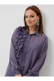 Эта изысканная блузка выполнена из нежного шифона и имеет прямой силуэт, который выгодно подчеркнет вашу женственность, блузка на подкладке. Она застегивается спереди на элегантные петли-пуговицы, что придает ей особый шарм. Блузка также украшена декоративными воланами на правой полочке, переходящими в красивый цветок, делая ее нарядной. Воротник блузки отложной на стойке добавляет изысканности, а длинные втачные рукава с манжетами, застегивающимися на петли-пуговицы, делают эту модель стильной и комфортной. Эта блузка станет отличным дополнением к вашему гардеробу и подчеркнет ваш неповторимый стиль.