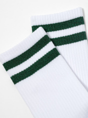 Хлопковые носки с яркими полосками из люрекса смотрятся так стильно и оригинально, что вам не захочется прятать их под одеждой. Смело носите трендовые носочки ACTIVE в стиле спорт-шик и с удовольствием подчеркивайте свою индивидуальность.