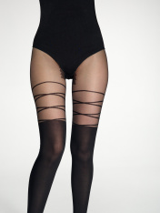 "Колготки с имитацией гольфинов со шнуровкой станут дерзким акцентом вашего образа и добавят ему игривой элегантности. Благодаря двойному оплету нити LYCRA, вам будет комфортно носить колготки на протяжении всего дня. LYCRA®: прочные, устойчивые к зацепкам и облегающие словно «вторая кожа» – именно такими свойствами обладают колготки, в состав которых включено волокно LYCRA. Двойной оплет: специальная технология изготовления нити, в которой LYCRA дважды оплетается полиамидной нитью. Благодаря этому полотно становится более эластичным и шелковистым на ощупь. 60/20 den тонкие и эластичные имитацией гольфинов со шнуровкой двойной оплет нити LYCRA удобный эластичный пояс хлопковая ластовица комфортный плоский шов для создания эффектных и уникальных образов."