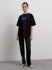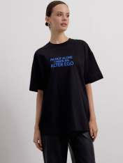 Удлиненная oversize-футболка из хлопка с рисунком «Alter ego» станет основой для множества расслабленных базовых образов, а стильный рисунок добавит вашему повседневному гардеробу больше индивидуальности. Обратите внимание: модель универсального размера, поэтому подойдет и женщинам, и мужчинам. • oversize • удлиненная модель • круглый вырез горловины с планкой в рубчик • спущенная линия плеч • короткие втачные рукава • мягкий и приятный к телу хлопок • печатный рисунок «Alter ego» • унисекс: универсальный размер для женщин и мужчин • сохранение формы и цвета при соблюдении рекомендаций по уходу • безупречный стиль и абсолютная свобода в движениях • всегда приятно открывать новые грани в привычной вещи.