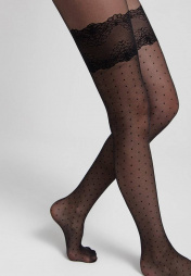 Колготки в точку с имитацией чулок c ажурной резинкой Seduction – модель, которая гарантированно привлечет внимание к красоте ног и подарит абсолютную уверенность в себе. • 20 den • рисунок «в точку» • имитация чулок с ажурной резинкой • тонкое и эластичное полотно • идеальное облегание • плоский шов • хлопковая ластовица • укрепленный мысок • созданы для соблазнительных образов.
