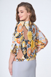 Блуза из текстиля с трикотажной посадкой и длиной 56 см DaLi 3532 оранж.цветы