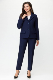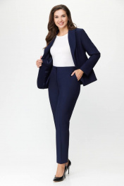 Деловой брючный костюм из текстиля с синим жакетом DaLi 3632 синий
