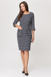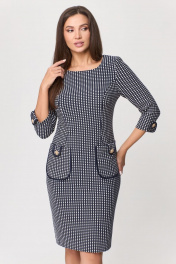 Платье из вискозы и трикотажа делового стиля DaLi 3644 синее+белое