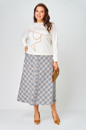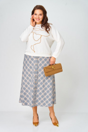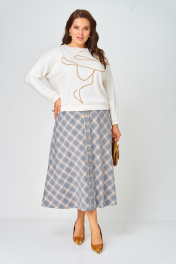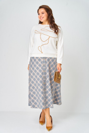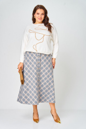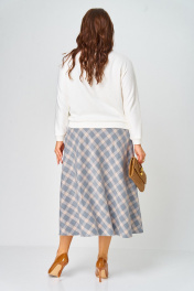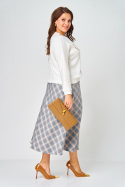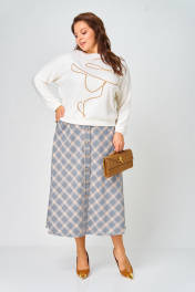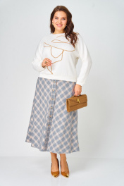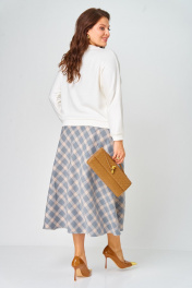 Объемный укороченный джемпер из уютной трикотажного полотна полной имитацией ручной вязки «фактурные косы ». Ткань мягкая, не колется, не раздражает кожу . Фасон изделия типа «летучая мышь» прекрасно скрывает недостатки фигуры. Рукав длинный, дополнен широкой манжетой. Горловина округлая, обработанная воротником – бейкой. Перед и спинка со швом по центру, это оригинальное решение раскроя деталей в виде «елочки» зрительно вытягивает фигуру . Длину изделия фиксирует притачная манжета по низу. Юбка-макси силуэта трапеция в косую шотландскую клетку. Изготовлена из костюмно-плательной ткани. Изделие удлинено за счет высокой посадки на талии. Со стороны пояса спинки проложена резинка, обеспечивающая комфортное прилегание по фигуре. Для хранения и ношения подручных мелочей послужат карманы по переду с отрезными бочками. Центральная планка переда создает дополнительную вертикальную линию, которая вытягивает силуэт. При этом пуговицы на планке несут функциональную нагрузку, играя роль застежки. Данный комплект смотрится нежно и элегантно, мотивирует на создание модных луков и сочетаний!