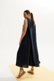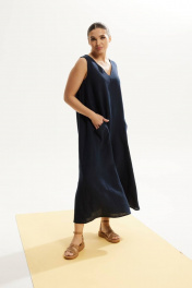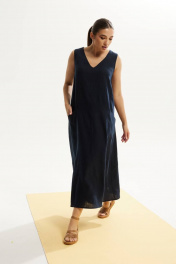 Платье свободного силуэта из льна с V-вырезом и карманами DAVA 141 синий