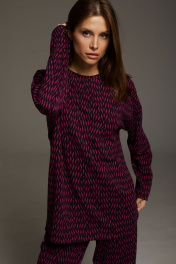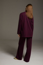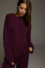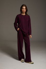 Комплект женский двухпредметный , состоящий из джемпера и брюк . Выполнен из двухцветного трикотажа средней плотности . Джемпер свободного силуэта , линия плеча спущена Горловина круглая , обработана бейкой из основного трикотажа .Брюки свободног силуэта с функциональными карманами . Верх брюк обработан поясом с резинкой .