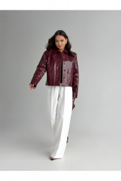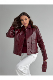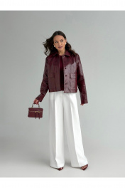 Жакет полуприлегающего силуэта , выполнен из искусственной кожи . Жакет на подкладке .Воротник стояче-отложной . По переду застежка центральная потайная и накладные карманы с клапанами . Рукав слегка спущенный .