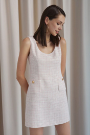 Деловое платье из твида с накладными карманами DAVYDOV 6097 розовый
