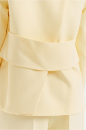 Комплект женский двухпредметный выполнен из костюмной ткани премиум класса, жакет на подкладке. Универсальный классический жакет прямого силуэта, V-образный вырез горловины, выточки из плеча, подрезы по переду изделия - это все позволяет превосходно посадить жакет по фигуре. По переду обработаны прорезные карманы с листочкой. Оригинальный крой спинки с отлетной деталью и поясом придает изделию свою изюминку. Рукава - втачные двухшовные с плечевыми накладками. Брюки - прямые. Пояс - отрезной, на резинке по кругу. Имеются карманы с отрезными бочками и шлевки для ремня. По переду застроченные стрелки. Низ брюк обработан швом в подгибку с закрытым срезом. Отделочная фурнитура может меняться.