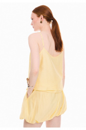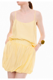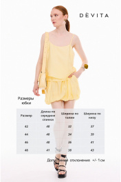 Юбка-баллон из легкой, полупрозрачной ткани. Юбка расклешённая, с воздушным низом, длиной выше линии колен. Отрезной пояс на резинке обеспечит комфортную посадку на талии. В боковых швах обработаны удобные карманы. Юбка на подкладке из основной ткани. По шву притачивания подкладки к низу- срез юбки присборен на эластичную тесьму. Измерения готового изделия расположены в табличке с фотографиями.