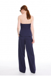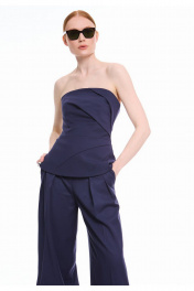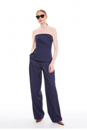 Брюки - палаццо сочетают в себе утонченный стиль и непревзойденный комфорт. Модель с высокой посадкой на талии подчеркивает силуэт, а свободный крой обеспечивает легкость движений. Притачной пояс с застежкой на два крючка и потайную кнопку создает идеальную посадку. Изящные односторонние складочки по линии талии спереди добавляют модели элегантности, а фигурные вытачки сзади обеспечивают безупречную посадку по фигуре. Боковые карманы, аккуратно встроенные в швы, и стильные прорезные карманы с листочками сзади делают эти брюки не только красивыми, но и практичными. Премиальная обработка всех швов и внимание к каждой детали подчеркивают высокое качество этой модели.