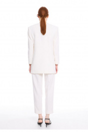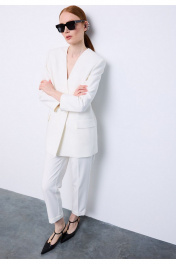 Элегантные брюки из костюмной поливискозной ткани премиум класса. Брюки свободного кроя, слегка заужены к низу, длиной до щиколотки. Великолепно садятся на фигуру, вытягивая силуэт, благодаря отточенным лекалам. Брюки на талии, с двумя боковыми карманами с отрезными бочками и застёжкой на тесьму молнию в среднем шве. Верхний край брюк обработан притачным поясом, застёгивающимся на два крючка и одну петлю и пуговицу. По линии талии заложены по две односторонние складки, центральные складки переходят в сгиб «стрелки». На задней части брюк имитация прорезных карманов с листочкой. Низ брюк обработан цельнокроеной манжетой. Премиальная обработка всех швов и внимание к каждой детали подчеркивают высокое качество этой модели. К брюкам идеально подходит жакет арт. 4026 из аналогичной ткани и цвета, для создания полного комплекта. Измерения готового изделия расположены в табличке с фотографиями.