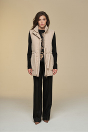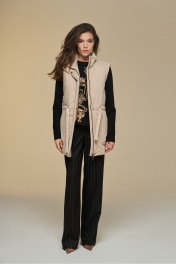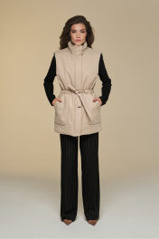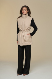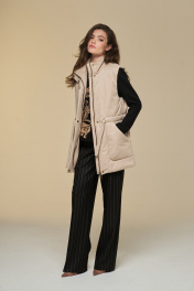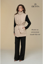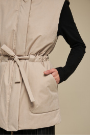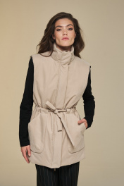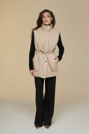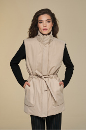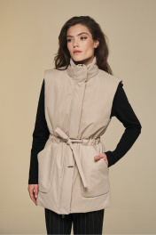 Жилет прямой на подкладке с высокой стойкой и поясом DEVITA 4016 песочный