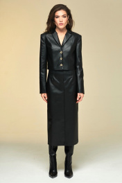 Короткий жакет из экокожи с металлическими пуговицами DEVITA 4017 черный