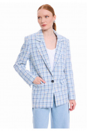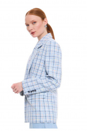 Жакет женский из костюмной смесовой твидовой ткани в клетку, на подкладке. Жакет прямого силуэта, с чёткой, слегка расширенной линией плеча. Длина до линии бёдер. Однобортная застёжка на одну петлю и пуговицу от перегиба лацкана. Воротник пиджачного типа, с отрезной стойкой, углы воротника и лацканов прямые. Перед жакета с вытачками пиджачного типа, горизонтально расположенными боковыми прорезными карманами с клапанами. Спинка прямая, со средним швом. Рукава двухшовные, втачные, локтевые швы заканчиваются открытыми шлицами. На шлицах по 4 отделочные петли и пуговицы. Жакет женский разбавляет и оживляет любой деловой образ, делая его утонченным, элегантным и очень стильным. Измерения готового изделия расположены в табличке с фотографиями.