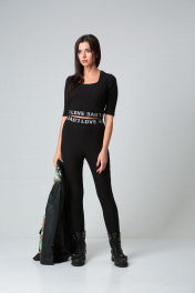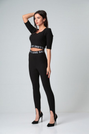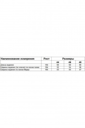 Брюки из трикотажного полотна , зауженные к низу со штрипками. По талии пояс из декоративной эластичной тесьмы. Длина по спинке 99 см.