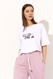 Трикотажный костюм с футболкой и зауженными брюками DILIA 0744 пудровый