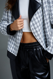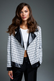 Жакет укороченный двубортный из текстиля и экокожи DILIA 0901 мультидизайн