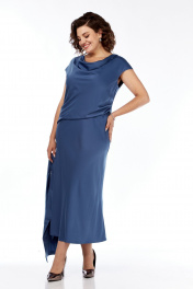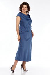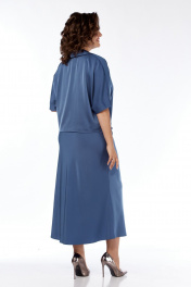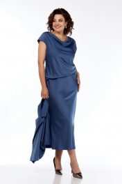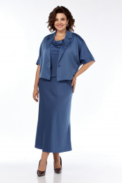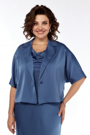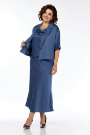 Комплект женский, состоит из платья и жакета. Жакет укроченный свободного кроя с застежкой на 1 петлю и пуговицу. Воротник пиджачного типа с лацканом. Рукав цельнокройный длиной 3/4. Платье полуприлегающего силуэта, чуть расклешенное к низу. Перед с косым подрезом и мягкими складками в области талии. Горловина в виде "качели". Пройма соспущенной линией плеча. Спинка со средним швом и потайной молнией до подреза. В области талии косой подрез.
