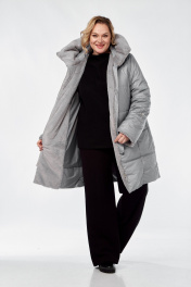 Демисезонное пальто полуприлегающего силуэта из плащёвой ткани Диомант 2040 серый