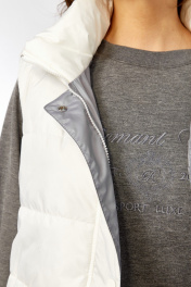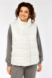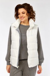 Жилетка женская прямого силуэта с центральной застежкой на тесьму-молнию и отделочную планку на кнопки. Боковой шов смещенный на перед, в шве обработаны карманы. Воротник-стойка со складками по линии горловины. Жилетка двухсторонняя. Температурный режим до +5 градусов. Длина по спинке 68 см.