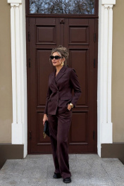 Брюки прямого силуэта. Имеються функциональные карманы. Длина брюк по боковому шву 106-108 см, длина брюк по внутреннему шву 83-86 см.