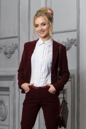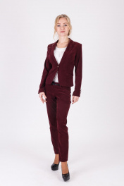 Женский классический костюм прилегающего силуэта,состоящий из укороченного пиджака на одну пуговицу и зауженных брюк. Высокое качество ткани и безупречный крой обеспечивают идеальную посадку на любой тип фигуры.