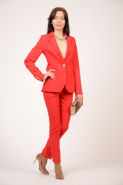 Женский классический костюм полуприлегающего силуэта, состоящий из жакета на одну пуговицу и классических зауженных брюк. Пиджак на подкладке с воротником пиджачного типа с лацканом, карманы прорезные с клапаном. Женские зауженные брюки со средней посадкой на притачном поясе. Высокое качество ткани и безупречный крой обеспечивают идеальную посадку на любой тип фигуры.