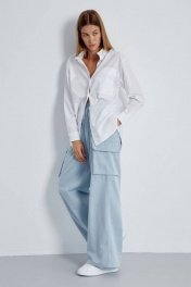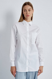 Стильная рубашка свободного прямого кроя в стиле «кэжуал» из хлопка. Спущенная линия плеча делает ее особенно комфортной. Модель с центральной застежкой на петли-пуговицы, стойкой, воротником рубашечного типа, по левой части переда располагается накладной карман. Низ рукава на притачной манжете с застежкой на петлю-пуговицу, а низ рубашки фигурной формы. Модель прекрасно комбинируется с брюками из нашей коллекции.