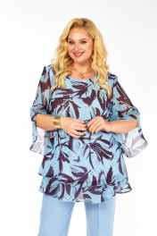 Блуза Элль-стиль 2213/12а голубой_кофе
