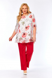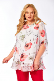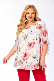 Блуза Элль-стиль 2213/13а белый_принт_маки