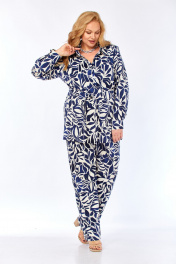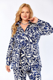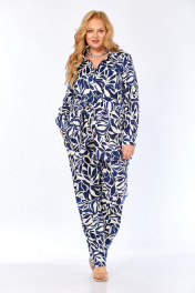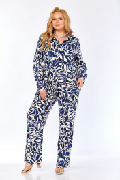 Блуза, брюки Элль-стиль 2299/1 синий_молочный_принт - фото 1