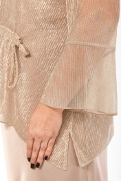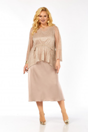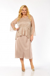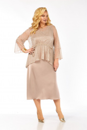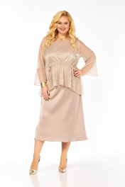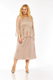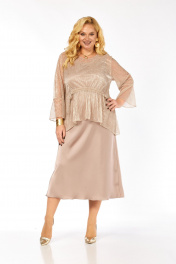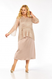 Уникальное платье, сочетает в себе изысканный дизайн. Модель платья подчеркнет вашу красоту и универсальность. Модель состоит из двух изделий платье и блуза. Платье полуприлегающего силуэта, длина миди Блуза выполнена из воздушной ткани, оно обладает свободным силуэтом, которая нежно обволакивает фигуру, создавая неповторимый образ. Горловина округлой формы. Эффектный втачной рукав, расширенный к низу. Блуза легко драпируется и очень выгодно и дорого подчёркивает образ, низ изделия асимметричный. Идеально подходит для торжественных выходов и не только!