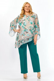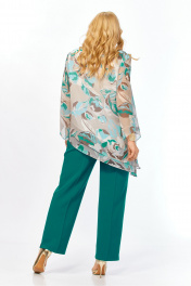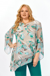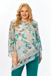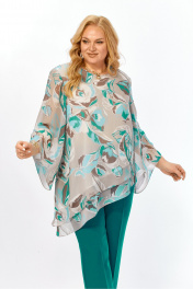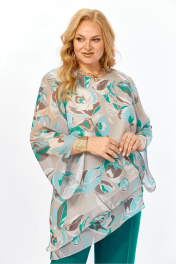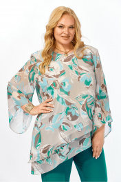 Блуза выполнена в романтичном стиле. Интересным решением служит ассиметричный, двухуровневый низ изделия, этим создает легкий, струящийся эффект. Рукав втачной, свободный, расширенный к низу. Горловина аккуратной округлой формы.