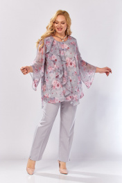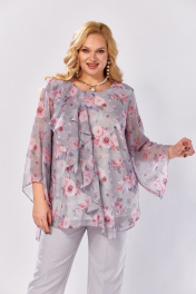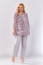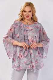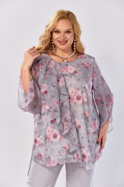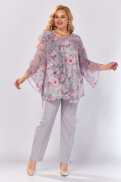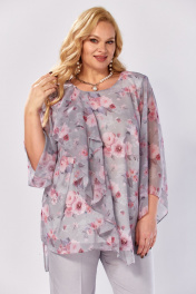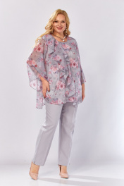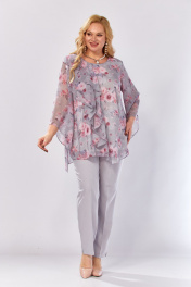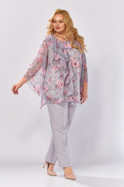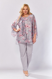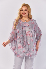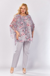 Блуза, брюки Элль-стиль 2460 серый_розовый_принт