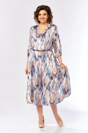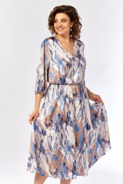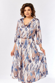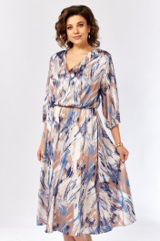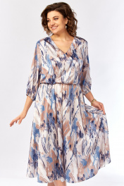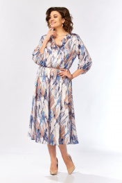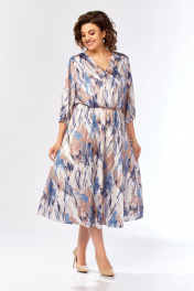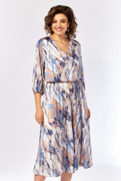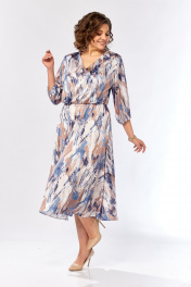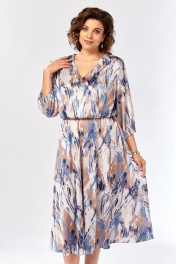 Платье Элль-стиль 2462 бежево-голубой_принт