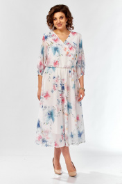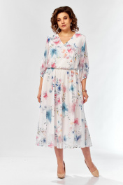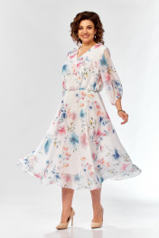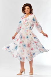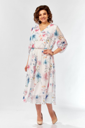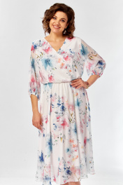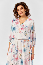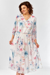 Платье Элль-стиль 2463 белый_принт_цветы - фото 1