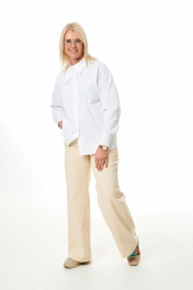 Брюки женские, прямые от бедра из джинсовой ткани. Перед с застежкой на молнию и функциональными карманами с отрезным бочком. Задние половинки брюк с накладными карманами и отрезной кокеткой. Брюки на притачном поясе, шлевками, застежкой на петлю, кнопку. длина изделия - 109 см Размеры 42 44 46 48 50 52 54 обхват талии 71 75 79 83 87 91 95 обхват бедер 98 102 106 110 114 118 122
