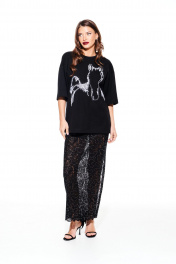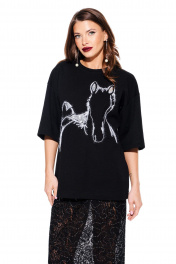 Джемпер из трикотажного полотна, прямого силуэта, свободный, с круглым вырезом горловины. Перед и спинка цельные. По переду выполнена вышивка "Лошадь".