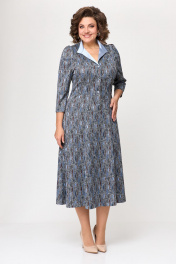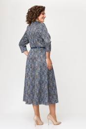Платье женское полуприлегающего силуэта расклешенное от бедра. По переду застежка на петли и пуговицы. Рукав втачной 3/4. Пояс с декоративной пряжкой прилагается. Длина готового изделия по спинке 127 см +/- 1 см. Длина рукава 55 см +/- 1см. В комплекте идет пояс. Примечание: Фурнитура может изменяться.