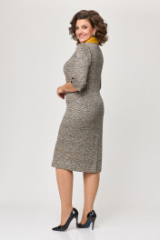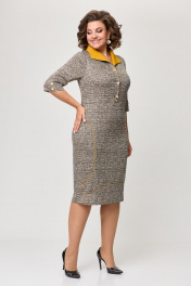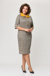 Платье в деловом стиле из трикотажа с пуговицами и воротом ELVIRA 104-4 серебристо-горчичный