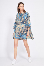 Комплект блуза оверсайз и шорты с накладными карманами EOLA 2367 персик_синий_беж