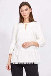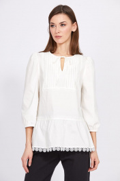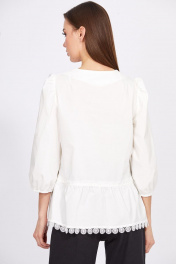 Блуза с кружевом и баской из стрейчевой ткани EOLA 2413 молочный