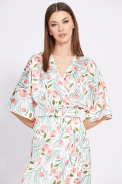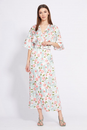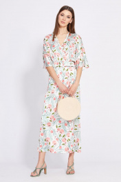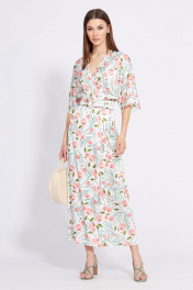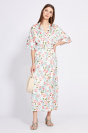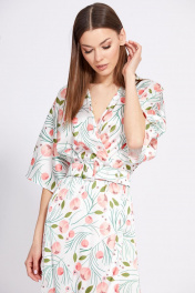 Платье отрезное по линии талии длиной миди с запахом EOLA 2420 молочный_рисунок
