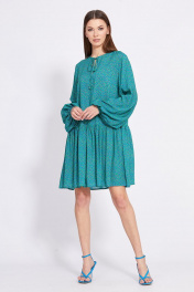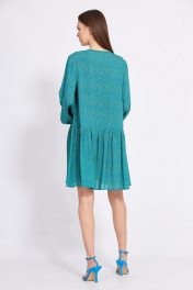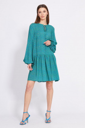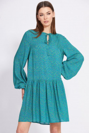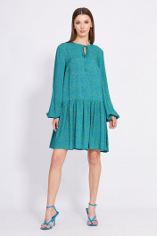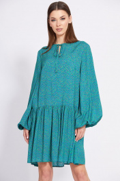Платье выполнено из плательной ткани с принтом. Платье А-образного силуэта, длиной миди. Перед со средним швом. Спинка цельная. Горловина округлой формы. Рукав втачной,одношовный, расширенный к низу и присборенный на эластичную тесьму. По низу широкая оборка из основной ткани. Длина платья - 91 см. Длина рукава - 63 см. 44 46 48 Длина по центру спинки 91 91 91 Длина рукава 63 63 63 Объем по груди 100 104 108 Объем по талии 112 116 120 Объем по бедрам 120 124 128 Объем по низу 244 244 244 Объем рукава вверху 36 38 40 Объем рукава внизу 19 19 19