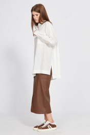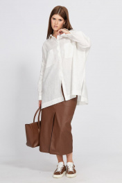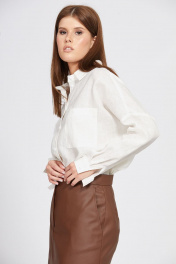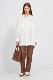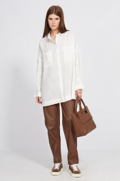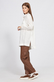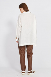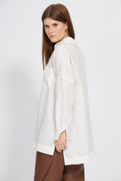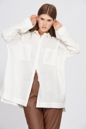 Белая оверсайз блузка из льна с накладными карманами EOLA 2489 молочный