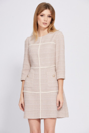 Деловое платье из твида с карманами и отрезной талией EOLA 2554 бежевый
