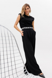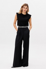 Палаццо из костюмной ткани с лампасами и боковыми карманами EOLA 2804 черный