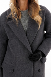 Пальто выполнено из пальтовой ткани в рубчик. Пальто прямого силуэта, длиной до середины икры. Спереди застежка двубортная на пришивные кнопки, горизонтальные прорезные карманы. Спинка со средним швом со шлицей по низу. Воротник пиджачного типа. Плечевой шов спущен. Рукав одношовный. Пальто на притачной по низу подкладке. Длина пальто: р.44-48 - 126,5 см, р.50-54 - 128 см. Длина рукава: р.44-48 - 74 см, р.50-54 - 75 см. ПАЛЬТО м. 2894 44 46 48 50 52 54 Длина по центру спинки 126,5 126,5 126,5 128 128 128 Длина рукава 74 74 74 75 75 75 Объем по груди 112 116 120 124 128 132 Объем по талии 110 114 118 122 126 130 Объем по бедрам 114 118 122 126 130 134 Объем рукава вверху 44 46 48 50 52 54 Объем рукава внизу 28 28 28 30 30 30